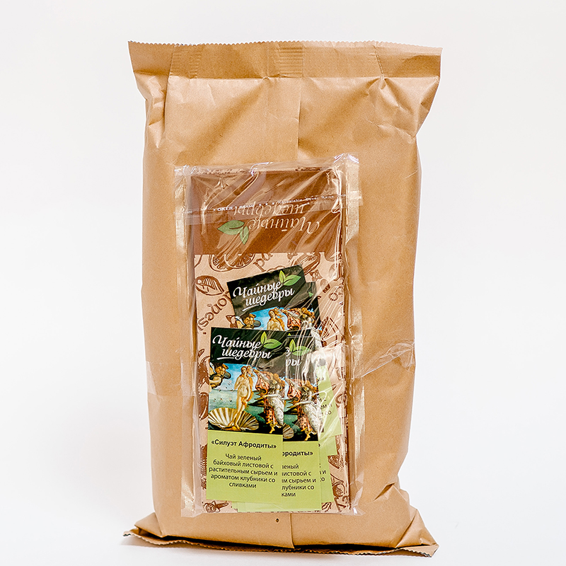 ! Чай "Силуэт Афродиты", ТМ "Чайные шедевры" зеленый байховый с растительным сырьем и ароматом клубники и сливками