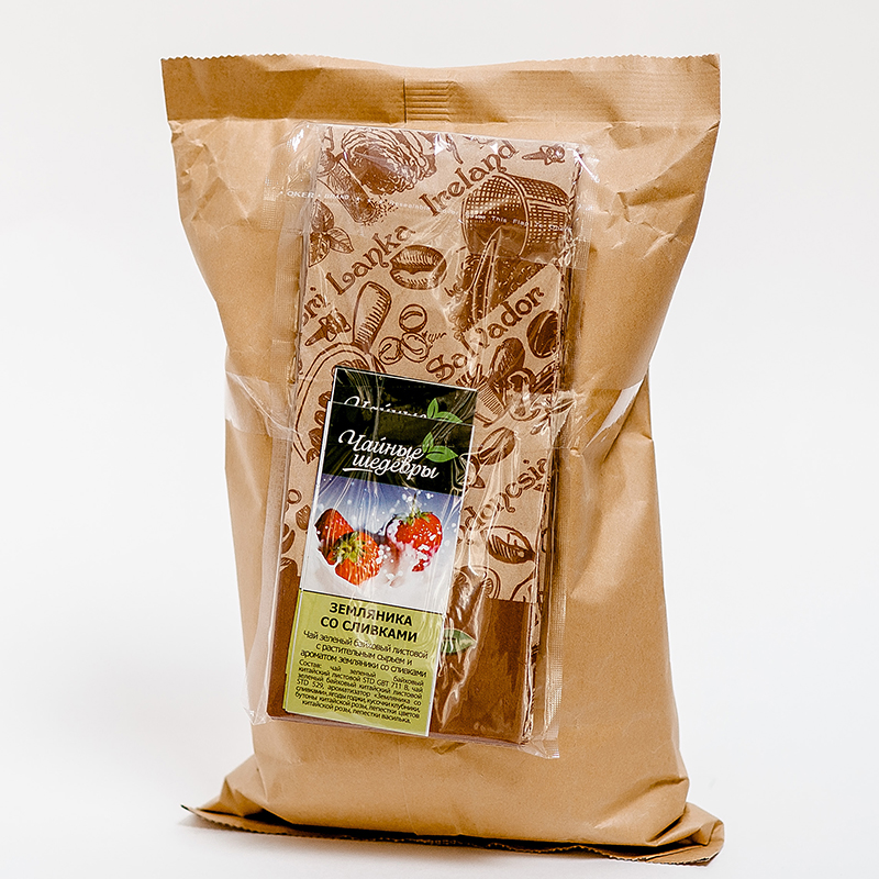 ! Чай "Земляника со сливками", ТМ "Чайные шедевры" зеленый байховый листовой с растительным сырьем и ароматом земляники со сливками