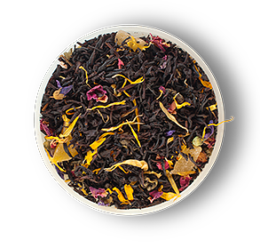 Бленд цейлонского черного и китайского зеленого чая с кусочками ананаса, лепестками цветов мальвы, календулы и китайской розы. Коричнево-красный настой имеет сладкий привкус с ароматами клубники со сливками и персика.