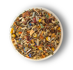 Лимонная трава, мате, трава эхинацеи, листья мяты перечной, ежевики, плоды шиповника, кусочки яблока, цедра и цветы апельсина, цветы ромашки, лепестки цветов сафлора и василька. Золотисто-желтый настой имеет свежий цветочно-травяной привкус с нотами цитрусов, мяты и с ароматом душистых трав.
