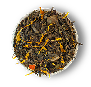 Китайский зеленый чай с листьями перечной мяты, кусочками ананаса, дольками и цедрой апельсина, лепестками календулы. Нежно-зеленый настой с вяжущим привкусом свежей мяты, с ароматами апельсина и грейпфрута.