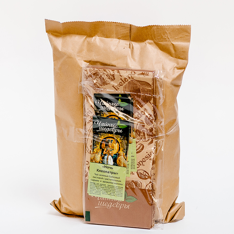 Чай "Ночь Клеопатры", ТМ "Чайные шедевры" зеленый байховый листовой с растительным сырьем и ароматом малины