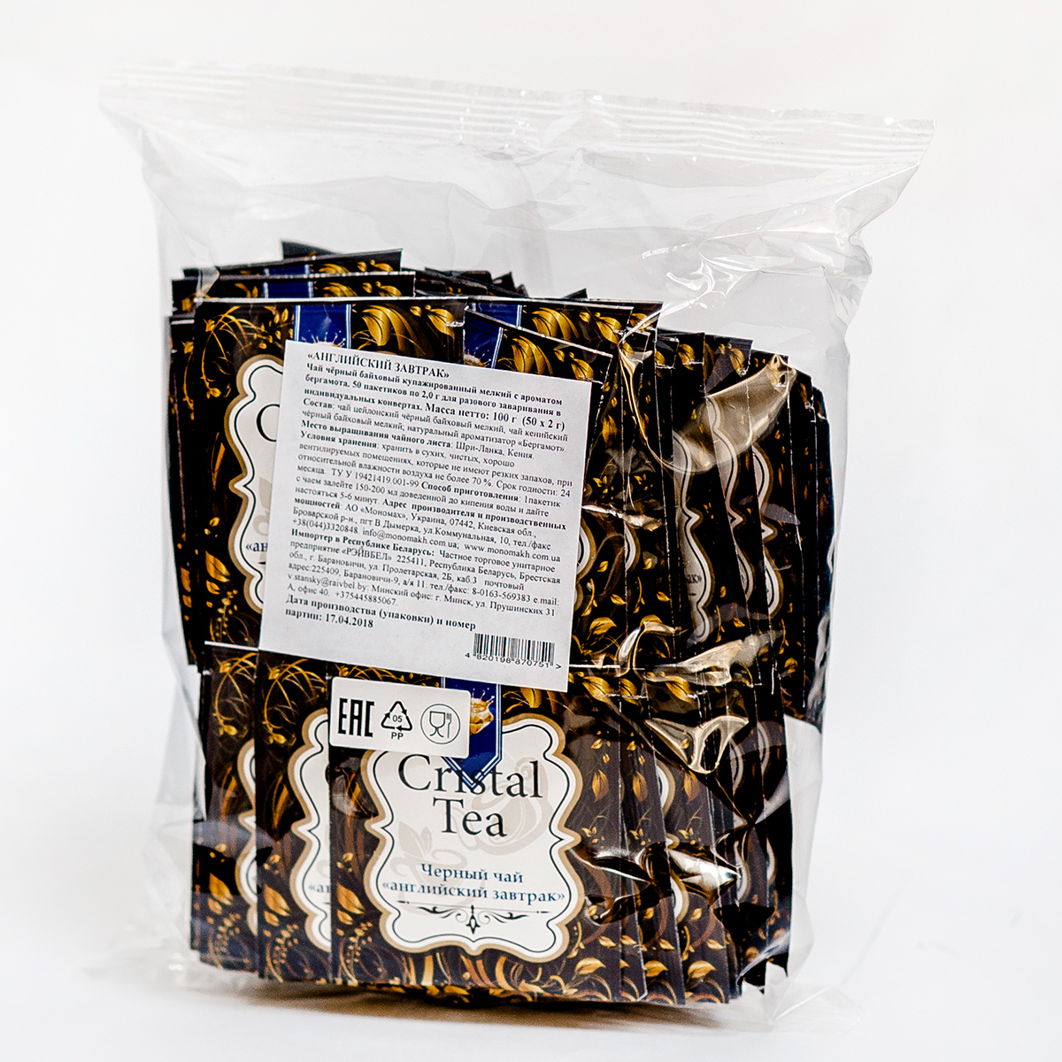 Чай "Английский завтрак", ТМ "Cristal Tea", черный байховый купажированный мелкий с ароматом бергамота 50*2 гр