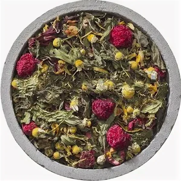 Иван-чай черный, цветки бессмертника, цветки гомфрены, цветки мальвы, брусничный лист, лепестки календулы, клюква, ягоды облепихи, натуральный ароматизатор.