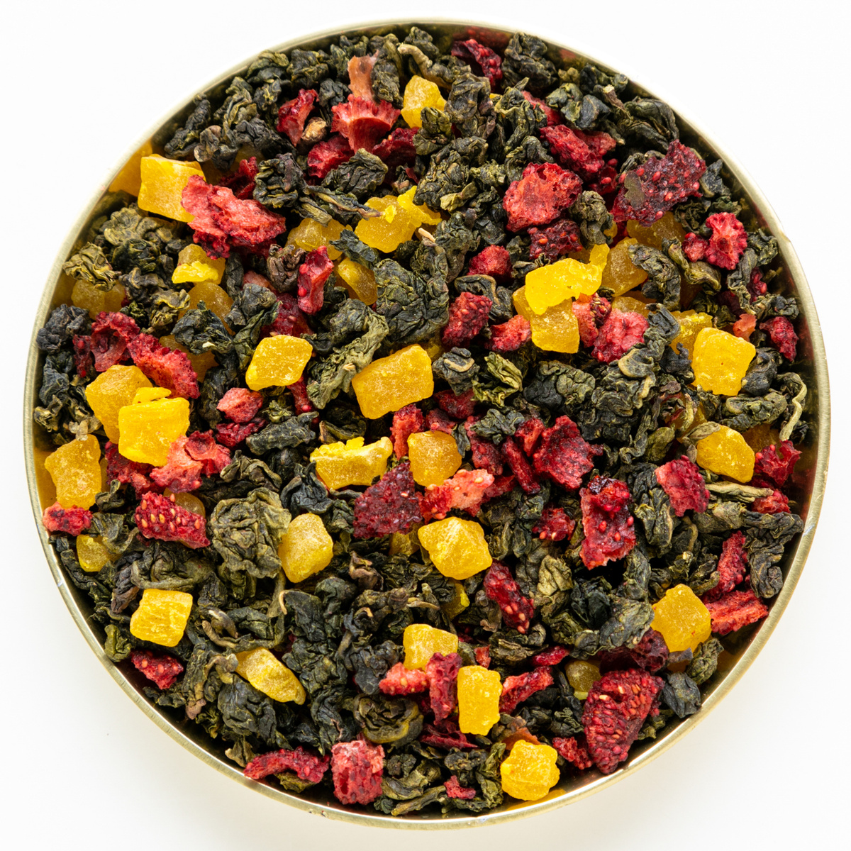 Классический китайский улун с добавлением кусочков сублимированной клубники и цукатов. Содержит пищевые ароматические масла.