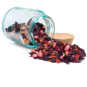 Купаж на основе каркаде, сафлор, цукаты, корка апельсина, яблоко, шиповник, ароматизатор "мандарин".