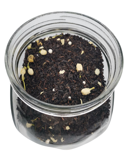 Чай черный, цветы жасмина, цветы хризантемы, Шарики СЕРЕБРЯНЫЕ, нежный натуральный аромат жасмина и розы.