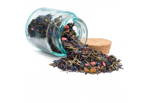 Купаж двух отборных чаев: черного и зеленого, обрамленный васильком, клубничными листочками, королевским изюмом и рубленым ананасом. Немного кремовый аромат шампанского смеси придают органические масла. В сухом виде – спокойное чайное полотно коричнево-изумрудного цвета с яркими лепесточками василька и желтыми вкраплениями ананаса.
