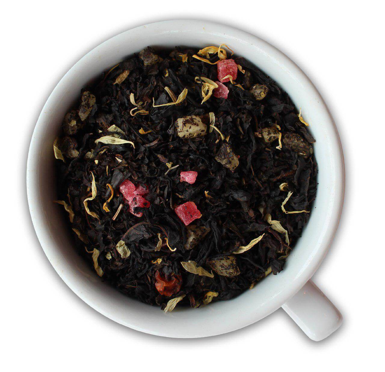 Потрясающий ассам в сочетании с сочными ягодами брусники, сушеной вишенкой, рубленым ананасом. Композиция украшена ярко-оранжевыми лепесточками календулы и ароматизирована органическими маслами. У сухой смеси фруктово-ягодный аромат с мармеладными мотивами. Напомнит запах из упаковки с желатиновыми мишками.