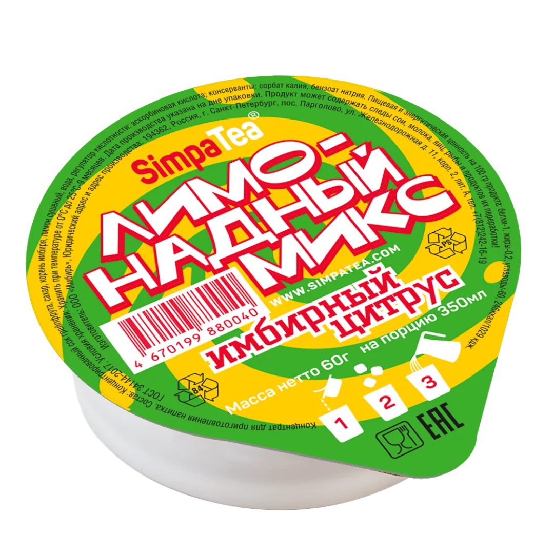 КОНЦЕНТРАТ "ИМБИРНЫЙ ЦИТРУС" ЛИМОНАДНЫЙ МИКС ТМ "SimpaTea", имбирь, апельсин, лимон, 1х18шт/60г (2/1), РФ