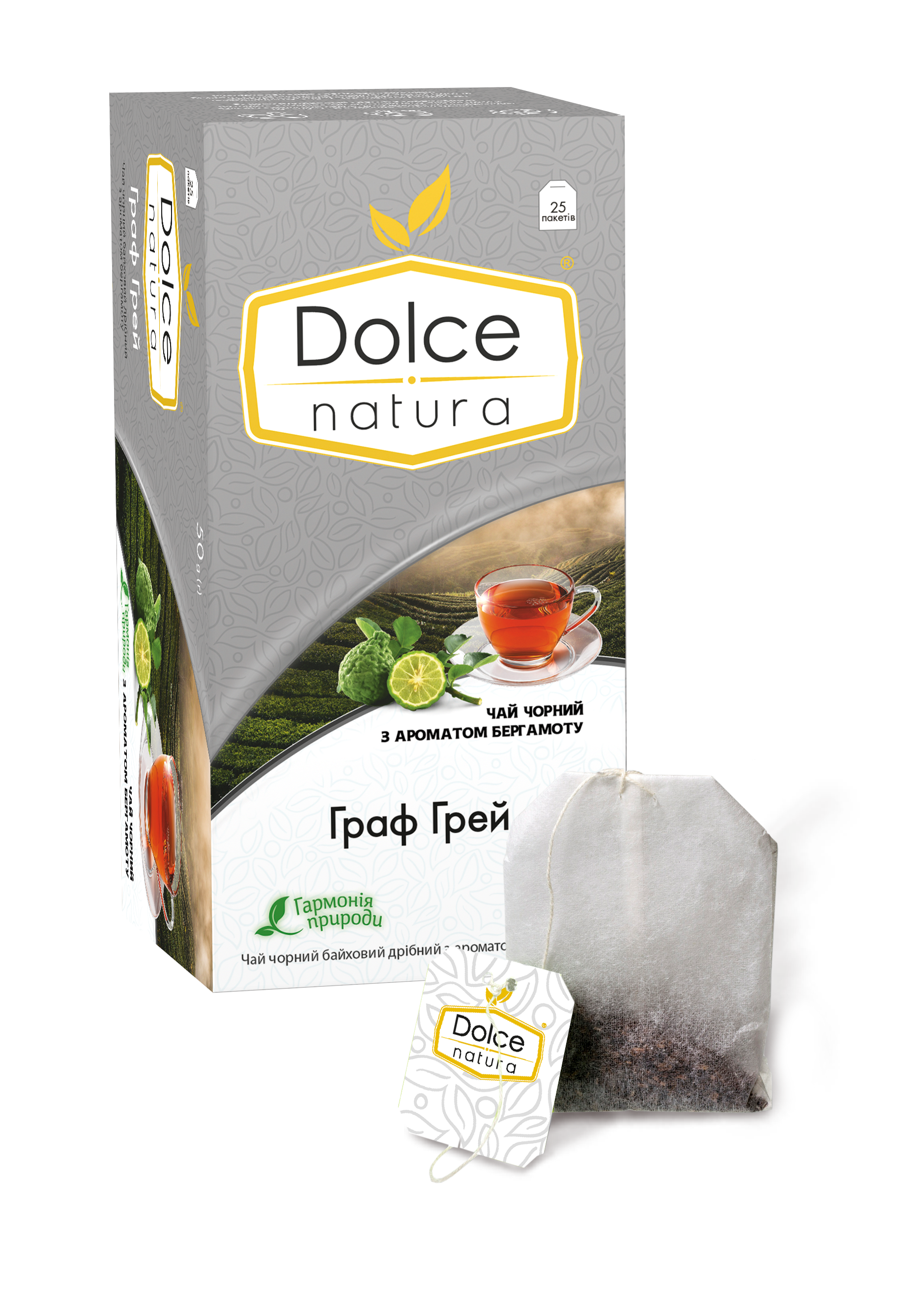 Чай "Граф Грей", ТМ "Dolce Natura" черный байховый мелкий с ароматом бергамота, пакетированный 50г, (25 х 2 г)