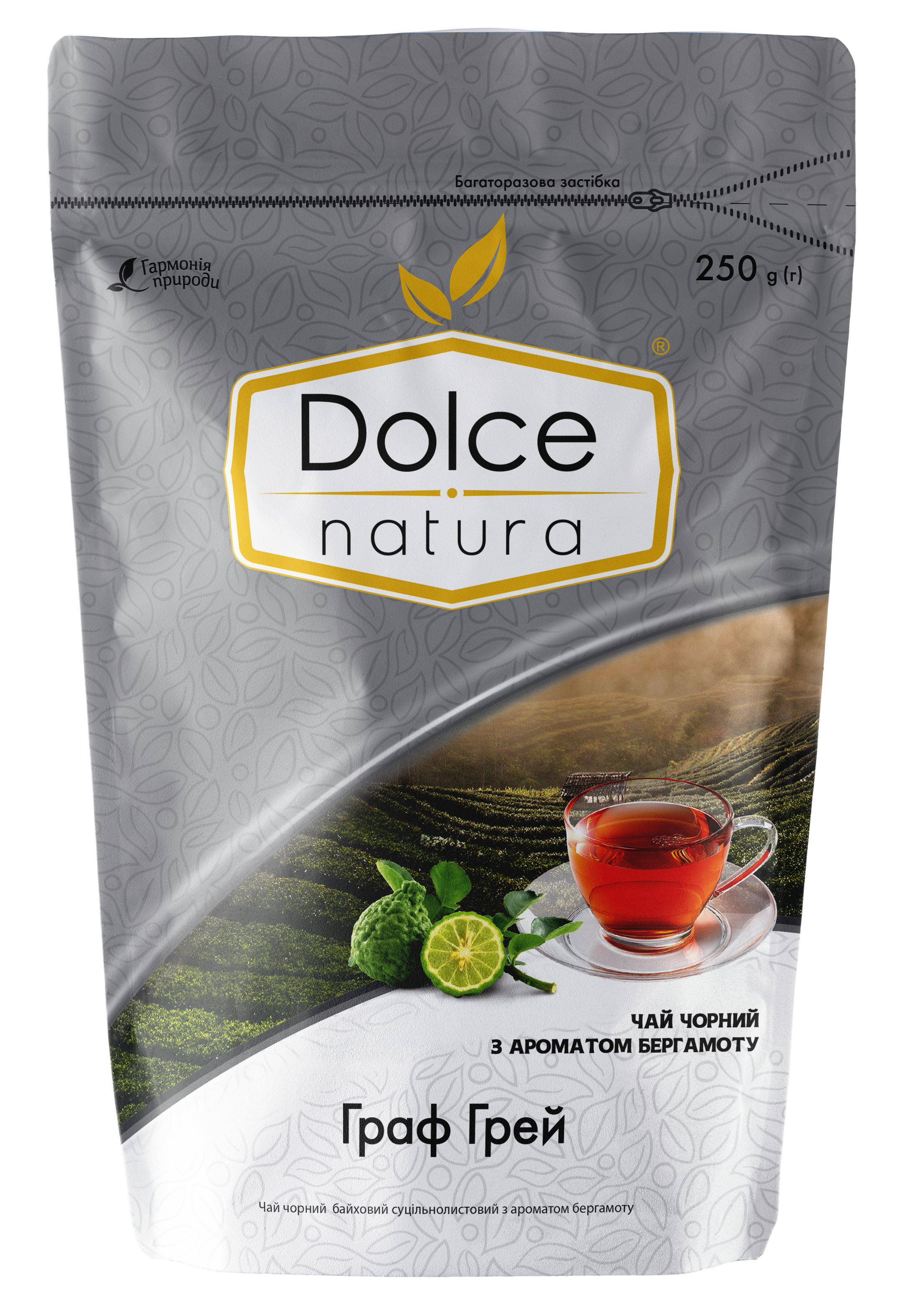 Чай черный байховый цельнолистовой с ароматом бергамота "Граф Грей" ТМ «Dolce Natura». Это смесь цейлонского и индийского чая. Этот вид чая является традиционным для tea time в Великобритании. Считается, что основателем этого напитка стал премьер-министр Англии Чарльз Грей. В благодарность за спасение британскими моряками сына китайского чиновника, мандарин открыл Грею секрет чая с бергамотом.