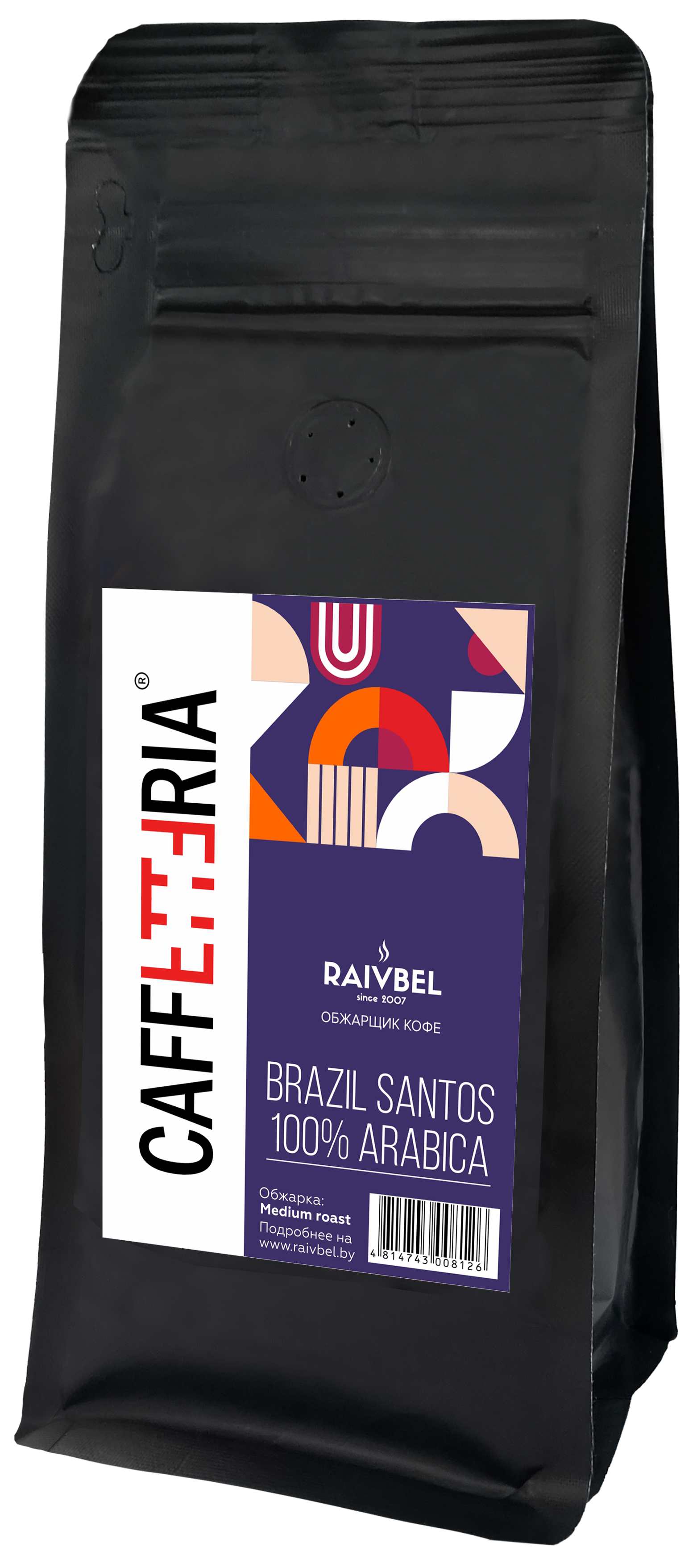 Кофе натуральный жареный в зернах "BRAZIL SANTOS", ТМ "CAFFETTERIA",100% арабика, средняя обжарка 250 гр, РБ (1кор/20шт), РБ