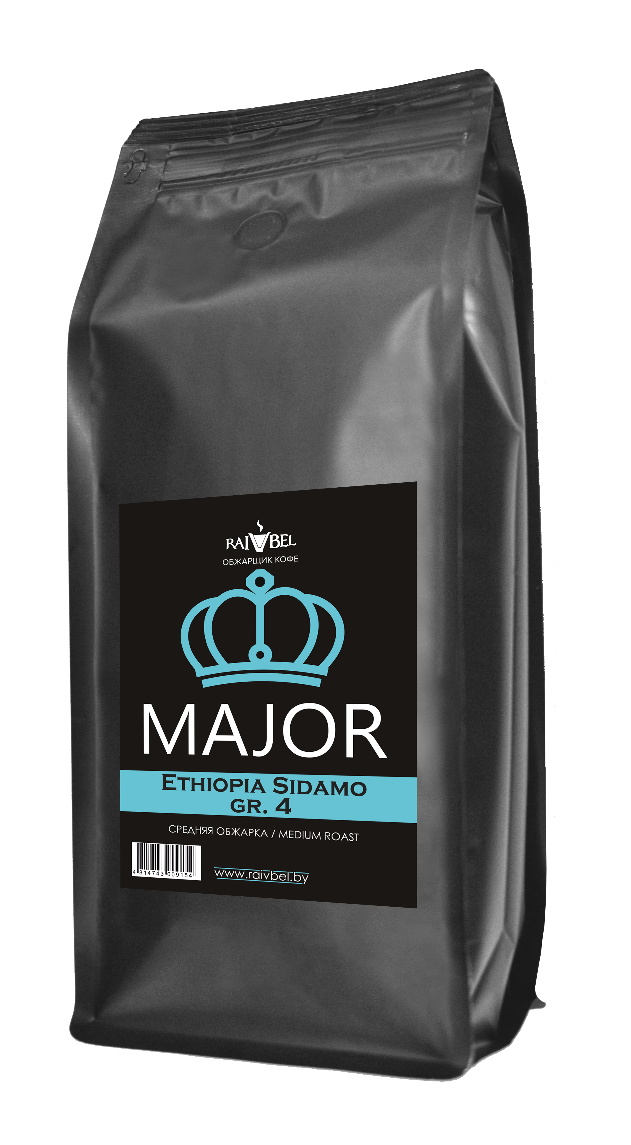 Кофе натуральный жареный в зернах "Ethiopia Sidamo gr.4", ТМ "MAJOR",100% арабика, средняя обжарка 1 кг, РБ (1кор/10шт), РБ