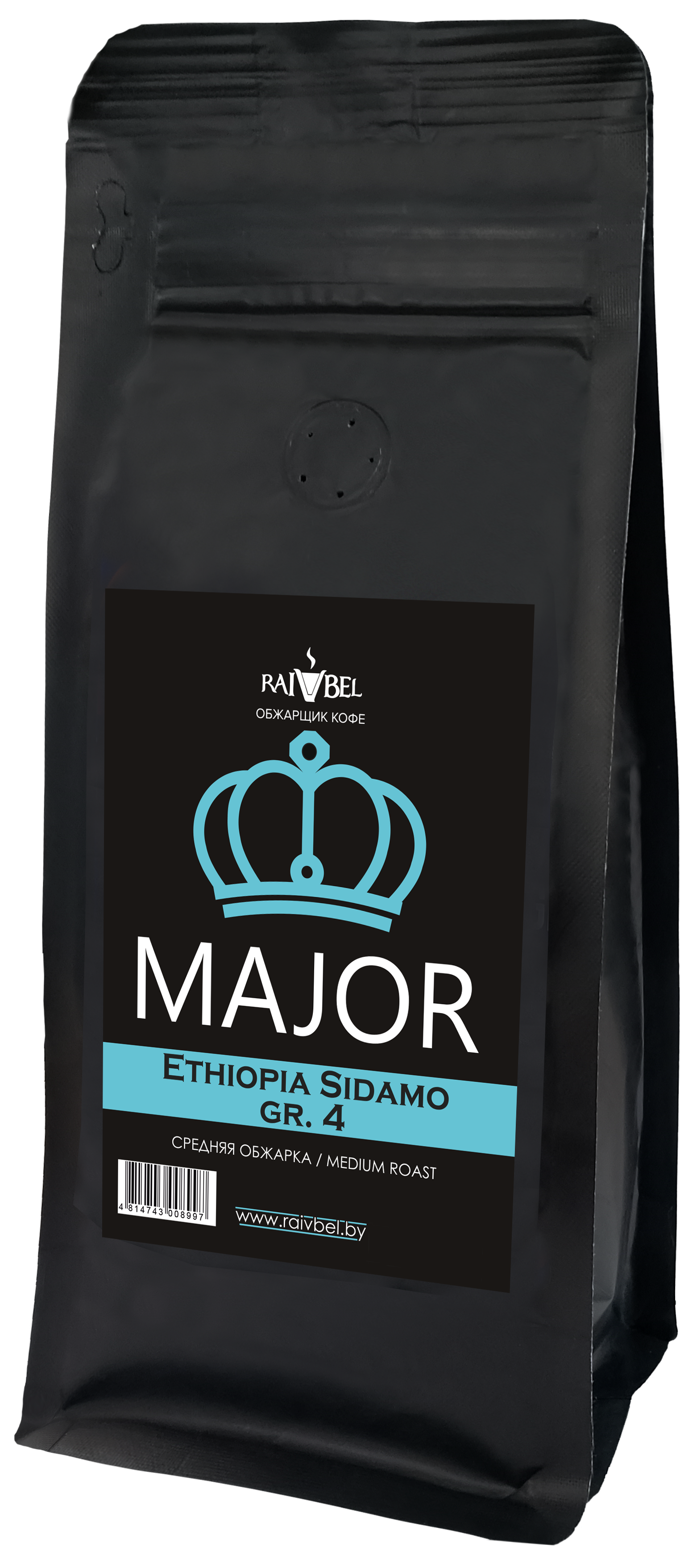 Кофе натуральный жареный в зернах "Ethiopia Sidamo gr.4", ТМ "MAJOR",100% арабика, средняя обжарка 250 гр, РБ (1кор/20шт), РБ