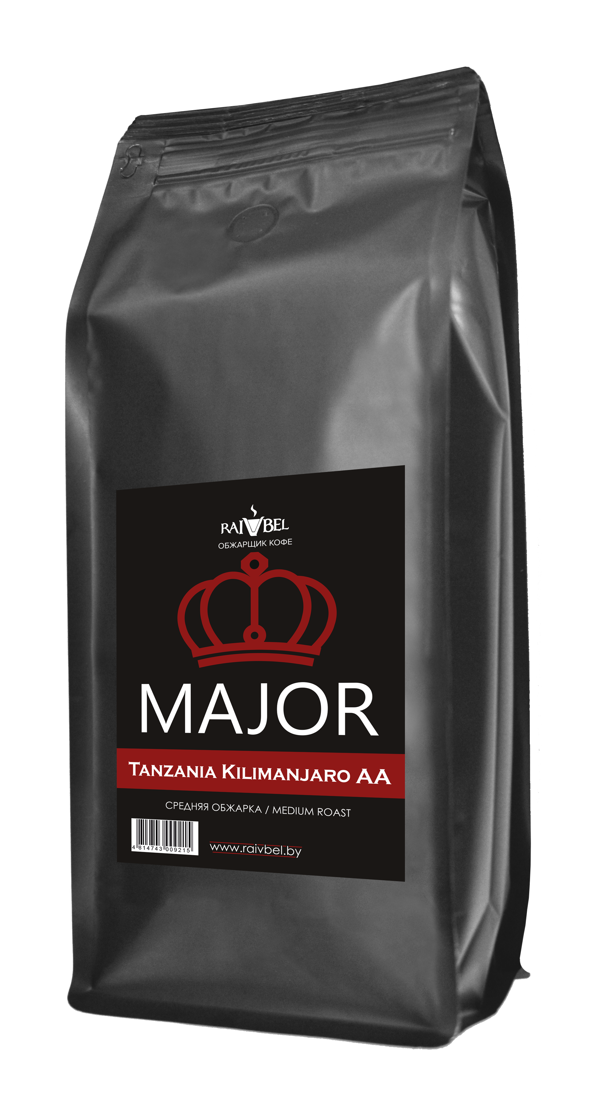 Кофе натуральный жареный в зернах "Tanzania Arabica AA "Kilimanjaro"", ТМ "MAJOR",100% арабика, средняя обжарка 1 кг, РБ (1кор/10шт)