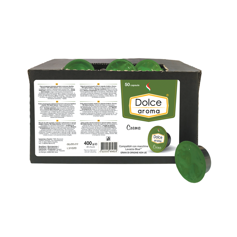 Кофе в капсулах "Dolce Aroma Crema" совместимы с Lavazza Blue (50шт/уп), ТМ "Dolce Aroma", Италия