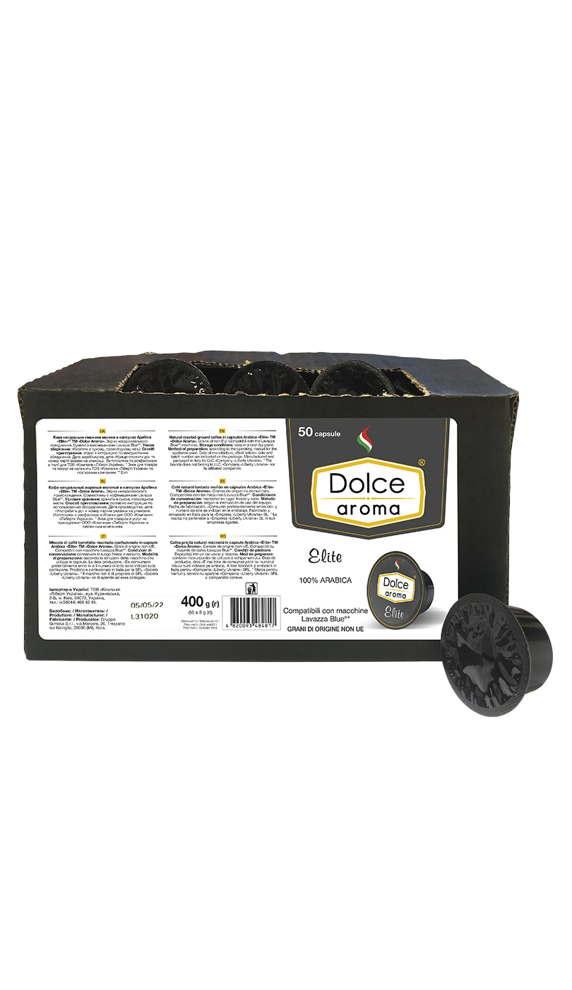 Кофе в капсулах "Dolce Aroma Elite" совместимы с Lavazza Blue (50шт/уп), ТМ "Dolce Aroma", Италия