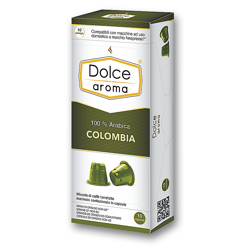 Кофе в капсулах "Dolce Aroma Colombia" совместимы с Nespresso (10шт/уп), ТМ "Dolce Aroma", Италия