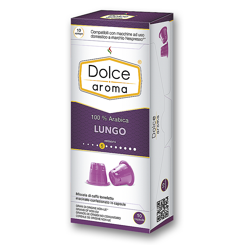 Кофе в капсулах "Dolce Aroma Lungo" совместимы с Nespresso (10шт/уп), ТМ "Dolce Aroma", Италия