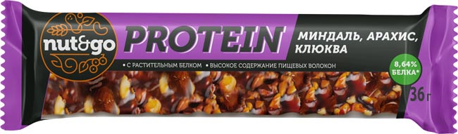 КВК467 КДВ Батончик "Nut N Go" протеин, миндаль, клюква, арахис 18шт/36 г РФ