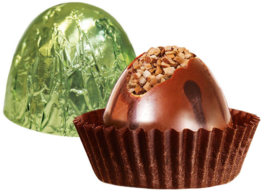 Под нежнейшей оболочкой молочного шоколада щедрая порция дроблёного фундука, утопающего в ореховом пралине.