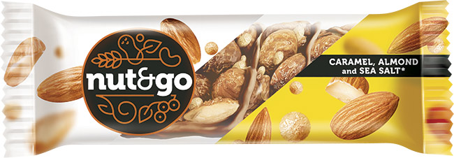 Батончик Nut and Go – идеальная композиция из цельного хрустящего миндаля, классической солёной карамели с добавлением морской соли для пикантности.