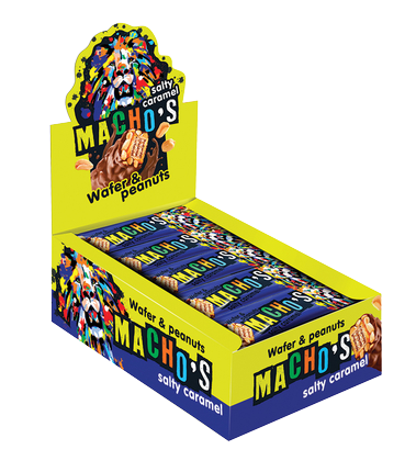 ЯВ290 КДВ Конфета глазированная с соленой карамелью, арахисом и вафлями «Батончик Macho”s» 15шт/40 г РФ