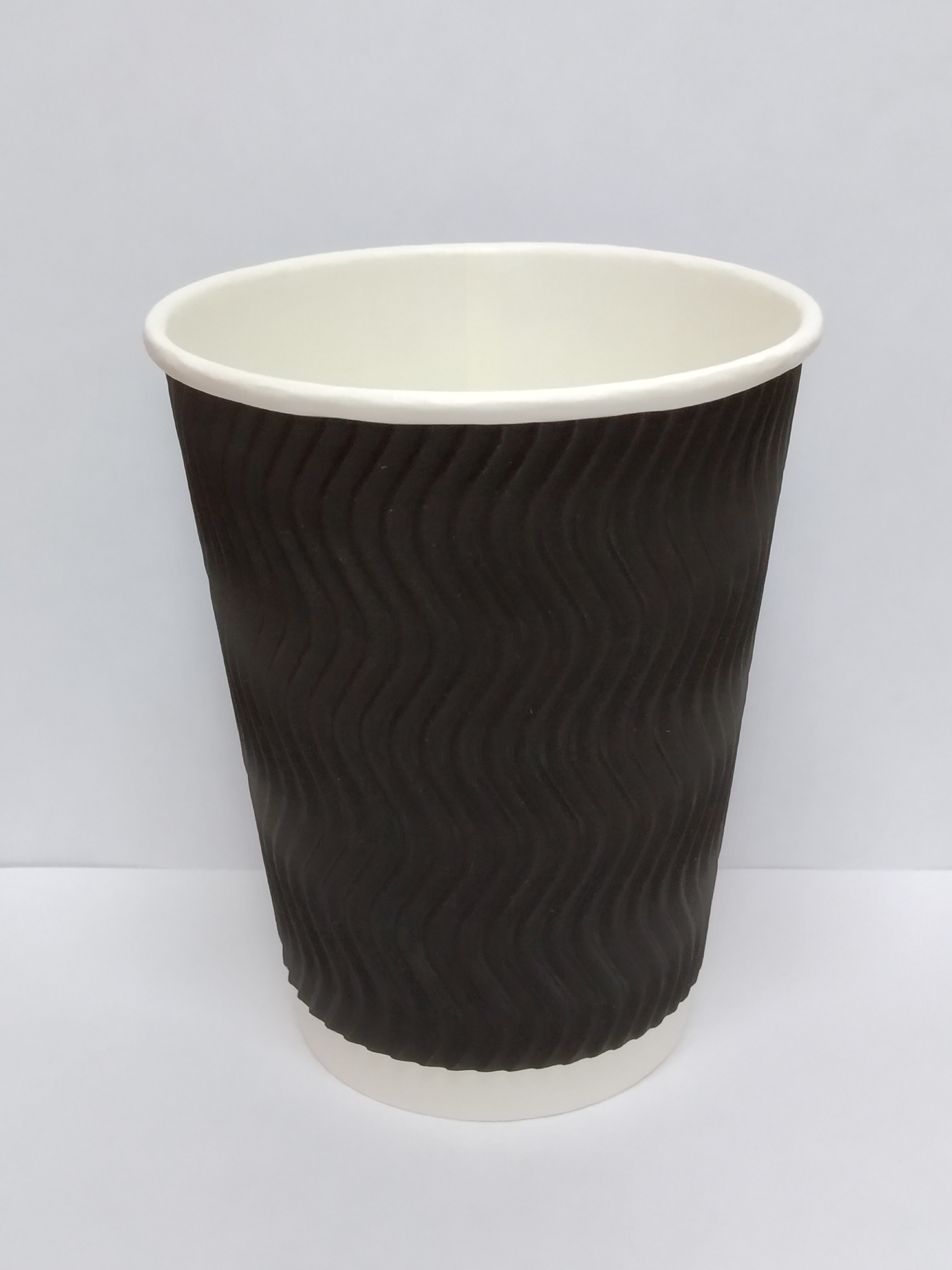 Стакан гофрированный картонный Ripple Wave, 350 мл (черный), посад диам. 90 мм, 1х30 шт. (20/1)