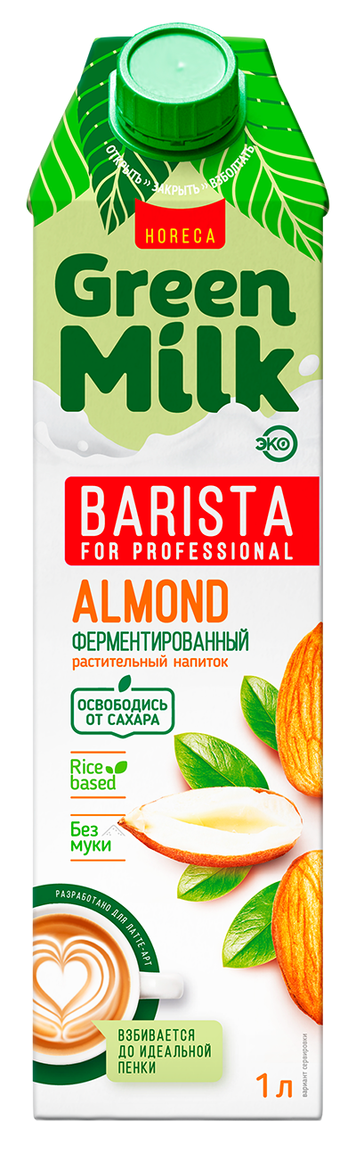 .Напиток безалкогольный МИНДАЛЬный на рисовой основе "Almond professional "Green Milk", Тетра Пак 1 л, Россия\12