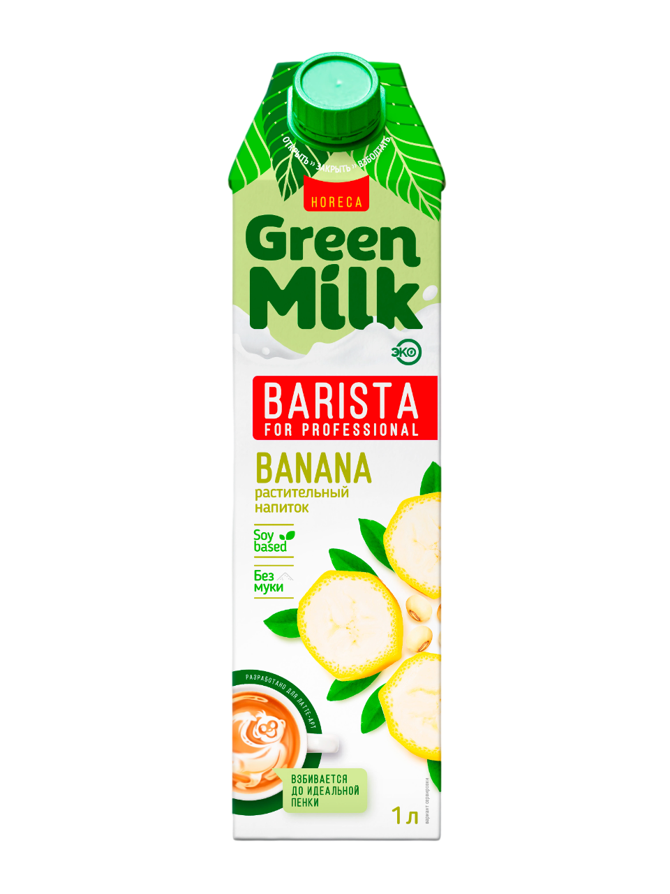 Напиток безалкогольный соевый со вкусом БАНАНА "Green Milk Barista", Тетра Пак 1 л, Россия\12
