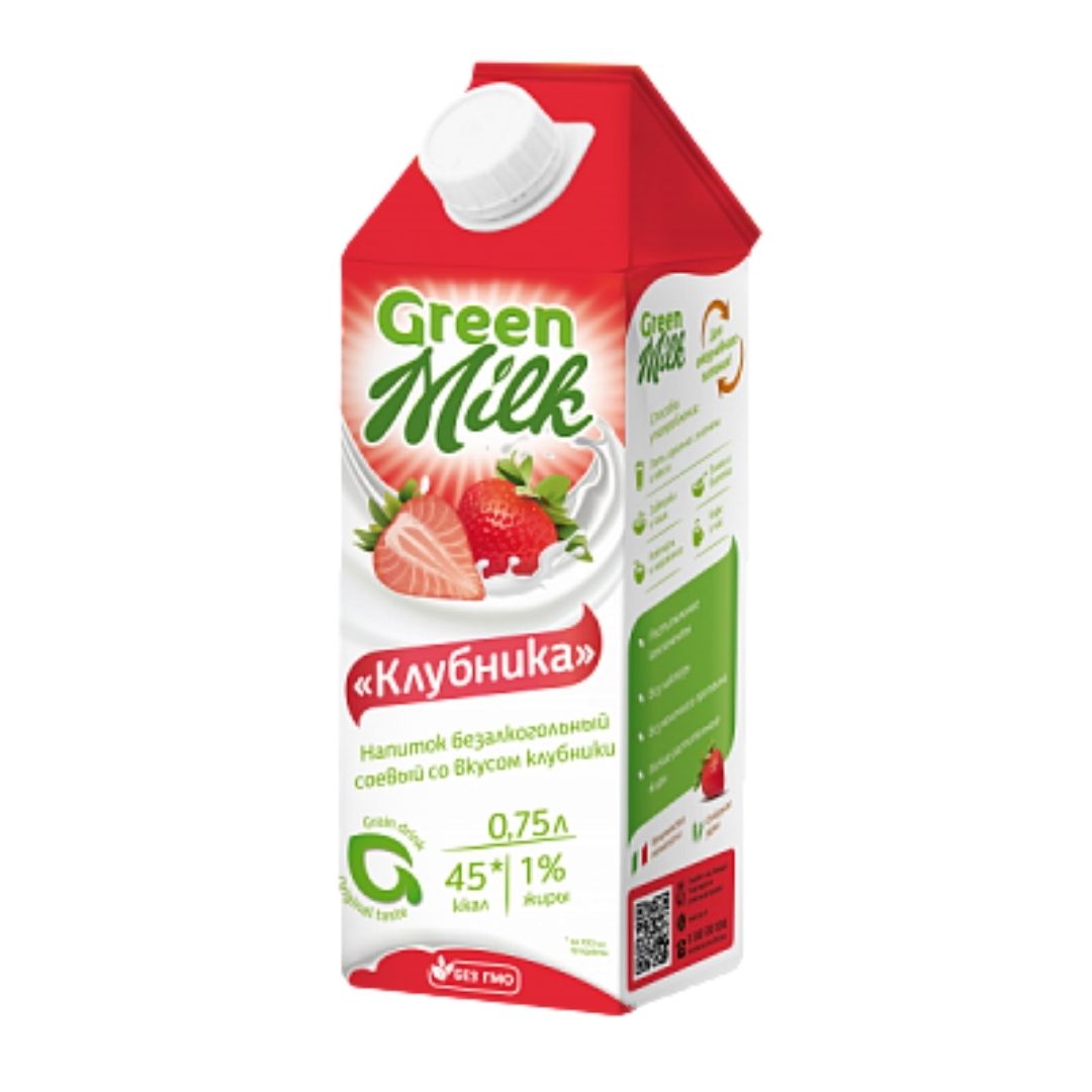 Напиток безалкогольный соевый со вкусом клубники "Green Milk", Тетра Пак 0,75 л, Россия\12