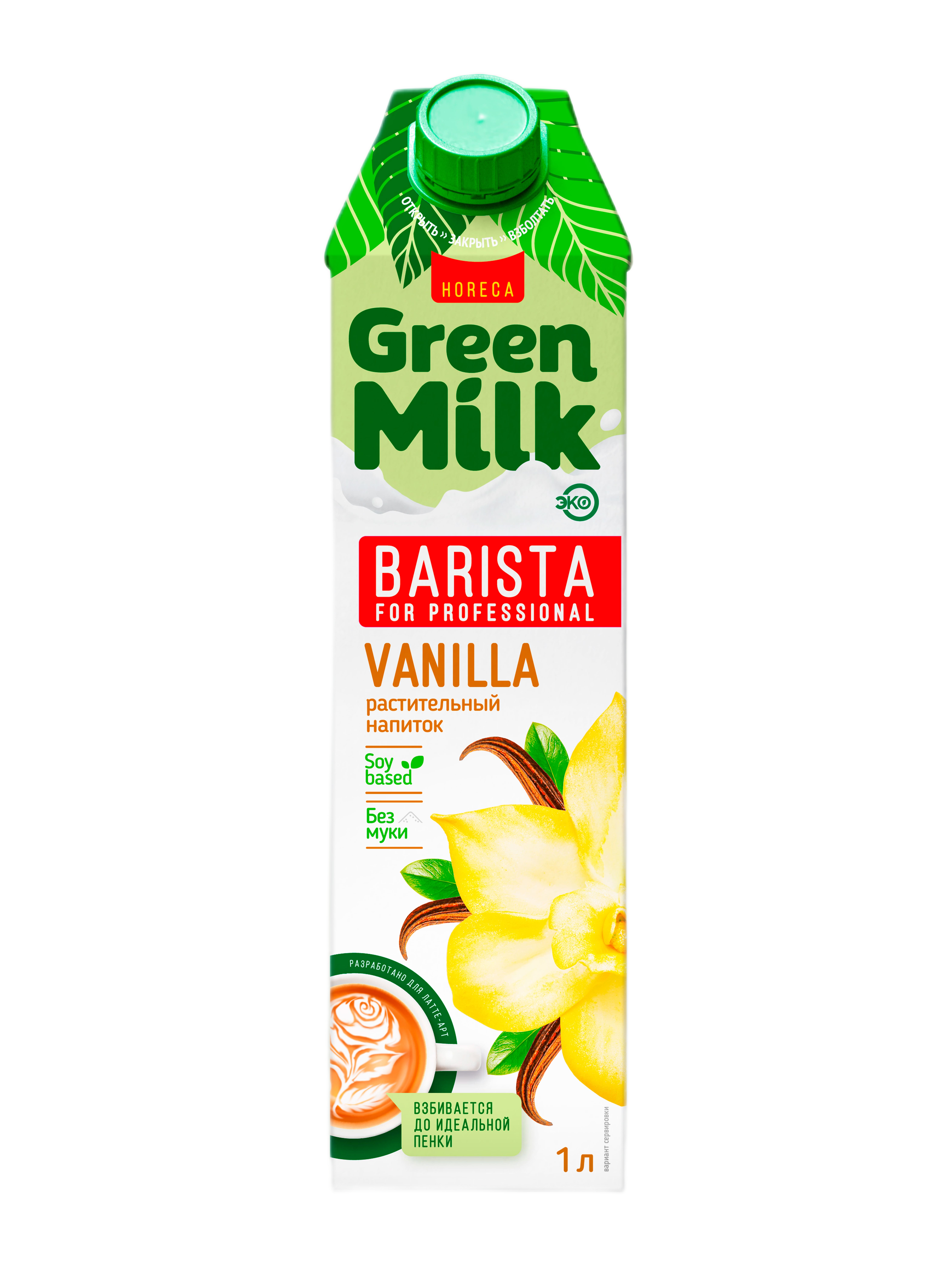 Напиток безалкогольный соевый со вкусом ВАНИЛИ "Green Milk Barista", Тетра Пак 1 л, Россия\12