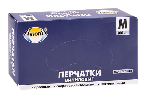 Перчатки виниловые неопудренные, одноразовые (100 шт в упаковке), размер M, Aviora, Китай